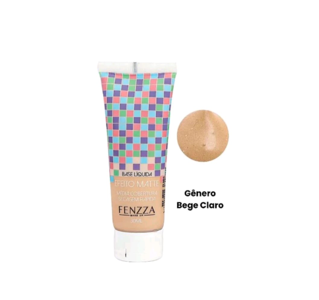 BASE LÍQUIDA EFEITO MATTE MEDIA COBERTURA FENZZA "COR BEGE CLARO" FZ-01